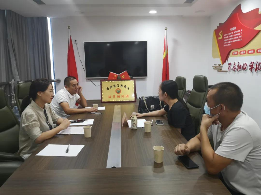 9月1日下午,温州市江西商会法律服务顾问团成员邵文娟律师在商会会议室开展法律接待。为在温赣商提供法律咨询,本次参与现场咨询的企业有七家,线上咨询企业十余家。此次活动获得了会员企业的一致好评,纷纷表示受益匪浅。