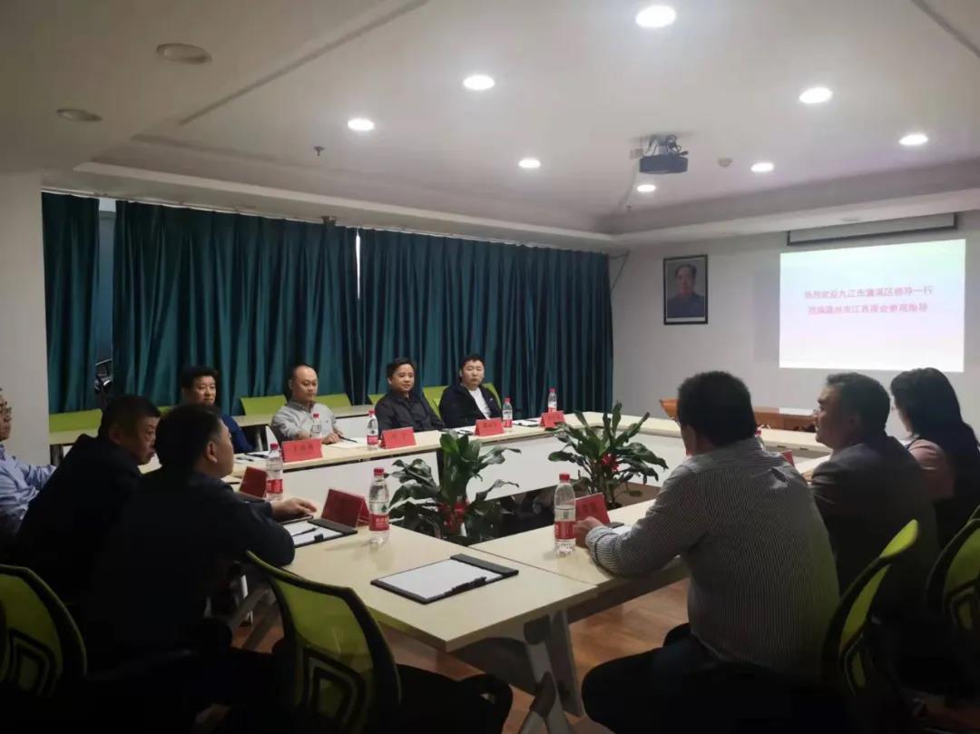 10月28日下午,江西省九江市濂溪区人民政府副区长叶宁、濂溪区民政局局长虞功智、濂溪区卫健委主任于成勇、濂溪区教体局局长吴晓青、濂溪区医保局局长、叶斌濂溪区史志办主任周建军、濂溪区政府办干部陈文韬在温州市武宁商会会长张革新的陪同下,莅临温州市江西商会参观指导,温州市江西商会执行会长陈施年、执行秘书长徐珍珍给予了热情的接待。