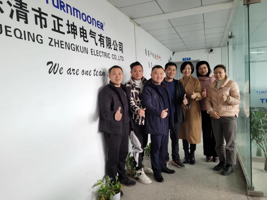 当走访团到达商会理事单位乐清市正坤电气有限公司时,雨停了,温暖的太阳出来了。公司创始人张毅在工厂门口热情的迎接了商会走访团一行。