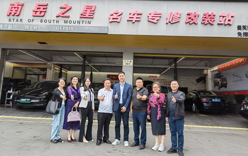 温州奔迪宝汽车服务有限公司的创始人冯乔柱理事向走访团一行分享了自己从汽修学徒成长为温州知名汽修公司老板的精彩创业故事,还分享了汽修行业的一些专业知识以及对新能源汽车发展的观点和看法,大家对他的专业知识赞不绝口。同时,作为实体行业的汽修公司,他还积极往电商方向探索,组建了抖音直播团队,开始在网络上推广和销售汽车修理和改装业务。